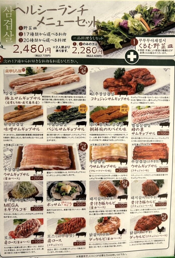 よく見かけるサムギョプサルや特に厚切りサムギョプサルもよくある中で、